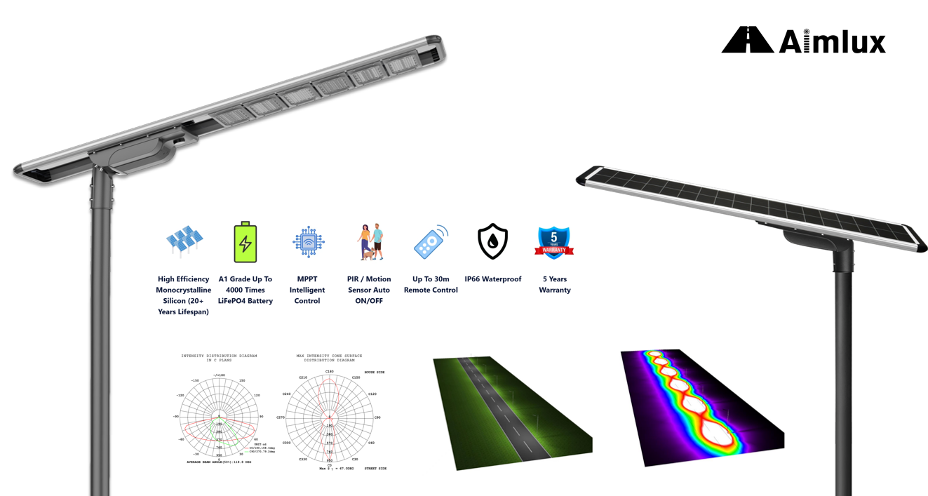 One example is the Aimlux Solar Street Light AL-SSB3, designed for both urban and rural lighting applications.